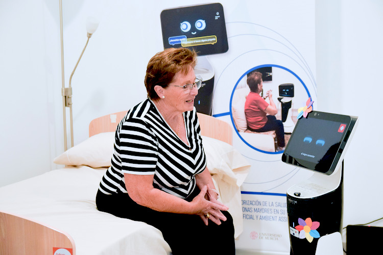 Otro aspecto diferenciador del sistema es la capacidad del robot para interactuar con el usuario con un lenguaje natural, ofreciendo compañía, estímulo cognitivo y apoyo emocional, una línea del proyecto que están desarrollando investigadores de la Facultad de Psicología y Logopedia de la Universidad de Murcia para diseñar protocolos de alerta temprana ante deterioros cognitivos, estrategias para que los dispositivos estimulen la memoria y la atención y promuevan la conexión afectiva de las personas mayores y su autoestima. “Nuestro seguimiento busca prevenir el aislamiento del individuo y su deterioro funcional para que mantenga su autonomía y bienestar emocional”, explica la coordinadora del proyecto en la UMU, Inmaculada Méndez.