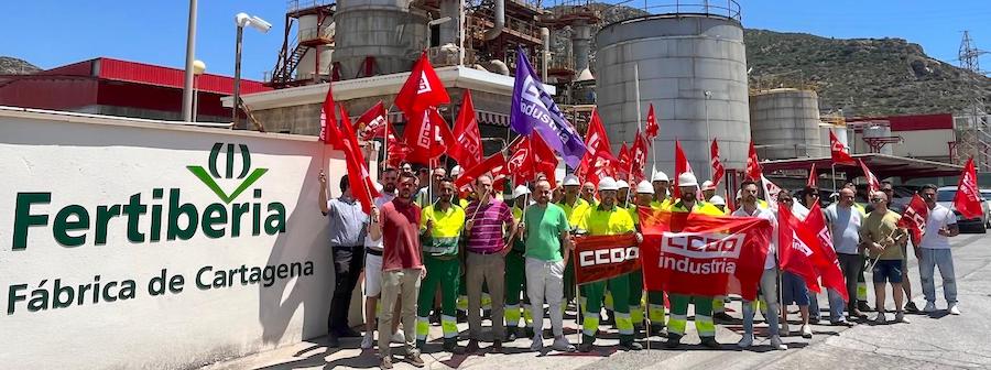 El sindicato UGT, junto con el comité de empresa de Fertiberia en Cartagena, ha convocado una huelga para los días 5, 6, 11, 12 y 13 de junio, en coordinación con todos los centros de trabajo de la compañía en España, que secundarán también el paro. La movilización sindical pretende hacer frente y paralizar la propuesta de la empresa de despedir a 54 trabajadores y trabajadoras, tres de ellos, en Cartagena. “Fertiberia ha presentado un ERE que no viene a cuento, en plena negociación de nuestro convenio colectivo y ha alegado unas circunstancias que no se dan. Si fueran reales y supusieran una necesidad urgente para la compañía, no contemplaría llevar a cabo esos despidos dentro de año y medio”, ha declarado Gregorio López, delegado de UGT en Fertiberia Cartagena.