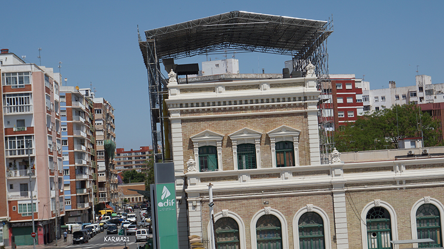 El histórico edificio modernista (diseñado por Víctor Beltrí e inaugurado en 1907) que acoge la salida y llegada de ferrocarriles está inmerso en un proyecto de remodelación total de larga duración, que en esta primera fase está generado escenas como las que muestran las fotografías.