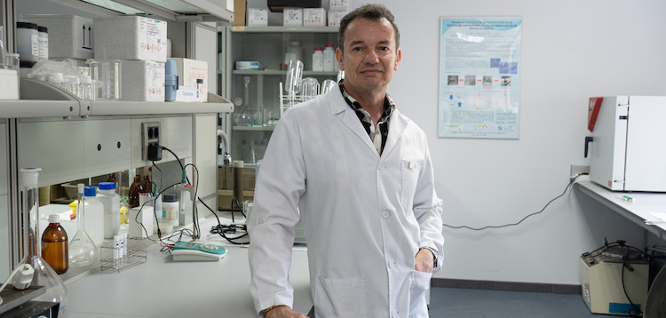 Investigadores de la UPCT y del Hospital General de Elche encuentran fibras y polímeros en la membrana que recorre los pulmones. Imagen adjunta de Javier Bayo en un laboratorio de Ingeniería Ambiental