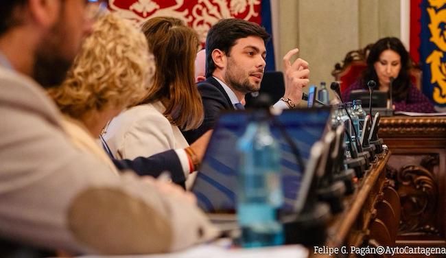 El portavoz del Grupo Municipal Socialista, Manolo Torres, ha defendido en el Pleno que se ha celebrado esta mañana en el Ayuntamiento de Cartagena que el PSOE actúa frente a los problemas que afectan a los cartageneros, “frente a la política del llanto y la queja de MC y la incapacidad de gestión de PP y Vox”.