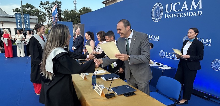 UCAM Cartagena gradúa a su VIII promoción en el campus de Los Dolores, donde la primera hornada de Odontología en inglés se ha unido a las titulaciones de Criminología, Educación Primaria, Enfermería, CAFD y Fisioterapia en una ceremonia llena de emoción y compromiso.