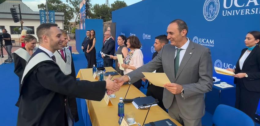 La graduación ha estado presidida por María Dolores García, presidenta de la UCAM; Miriam Mendoza, coordinadora responsable de UCAM Cartagena, Juan Alfonso García, director académico de la sede y Rafael Alcázar, director del Centro de Alto Rendimiento de la Región de Murcia, que ha ejercido de padrino de esta promoción. Han estado acompañados de los responsables académicos de las titulaciones.