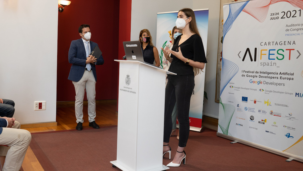 El Primer Festival de Inteligencia Artificial de Google Developers, AI FEST, se ha presentado en el Palacio Consistorial por parte de la alcaldesa de Cartagena, Noelia Arroyo, acompañada de Irene Ruiz, líder del Google Developer Groups Murcia y coorganizadora de Google Developer Groups Cartagena, y de José Carlos Madrid, vicepresidente de Murcia Inteligencia Artificial.