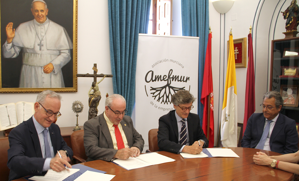 La Universidad Católica de Murcia ha firmado un convenio de colaboración con el Instituto de la Empresa Familiar y la Asociación Murciana de la Empresa Familiar (AMEFMUR), para la puesta en marcha de la Cátedra Internacional de Empresa Familiar, cuya labor se centrará en tres áreas: docencia (tanto a nivel de grado como de postgrado), investigación y divulgación.