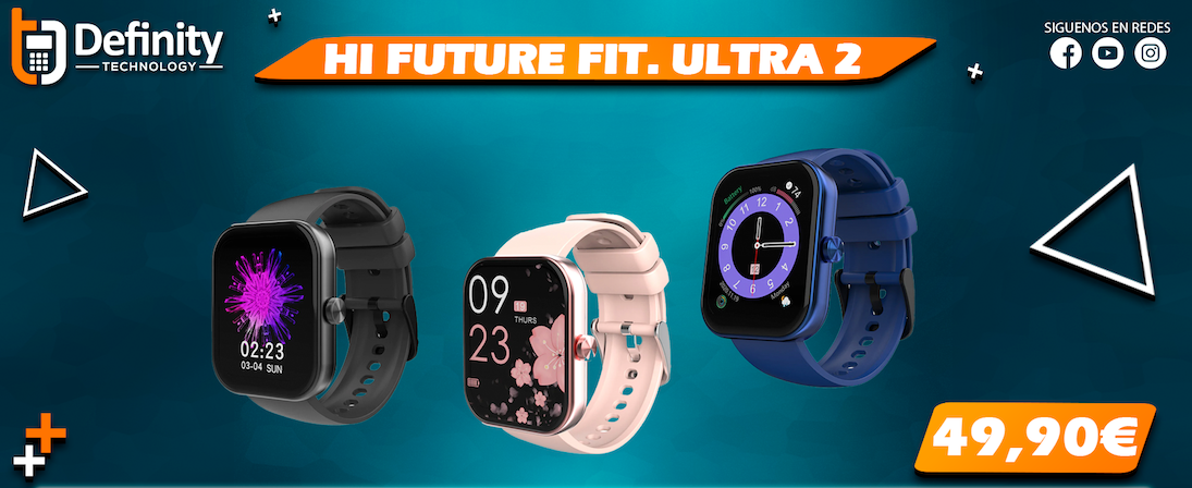 Definity Technology lanza esta semana otra oferta insuperable con relojes inteligentes ‘Hi Future Fit. Ultra 2’ al increíble precio de 49,90 euros. Tienen batería de una semana de duración y una infinidad de funciones que te facilitarán tu día a día.