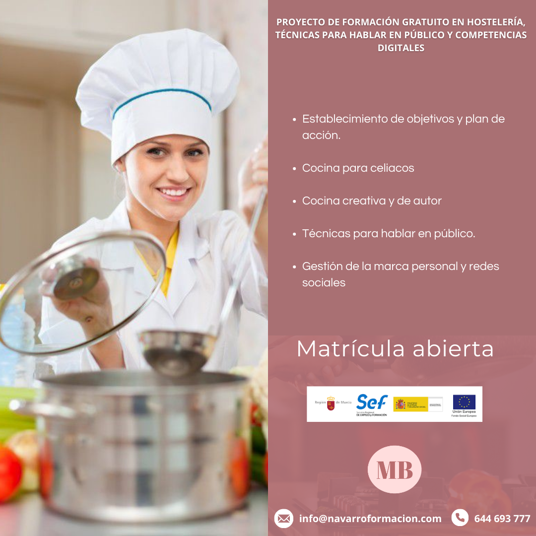 Formación en cocina, competencias digitales y técnicas para hablar en publico