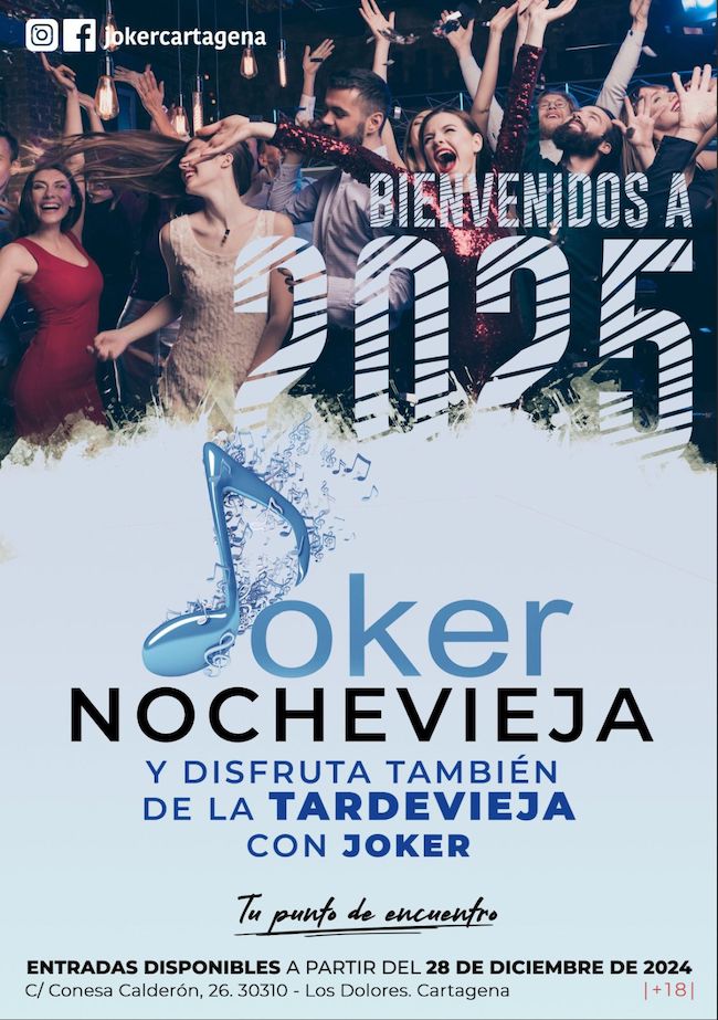 Pub Joker ha preparado, como viene haciendo desde hace tres décadas, una Nochevieja muy especial en su local de la calle Conesa Calderón de Los Dolores. Las entradas ya están a la venta. Además, ese mismo 31 de diciembre, pero horas antes, puedes disfrutar de la 'Tardevieja'. Recuerda, Joker es 'tu punto de encuentro'.