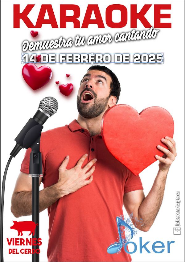 Pub Jóker te ofrece la oportunidad de hacerlo en la noche de hoy, 'Día de San Valentín', con su popular karaoke. El local de la calle Conesa Calderón de Los Dolores, que ha superado sus treinta y dos años de andadura, también ofrecerá antes a sus clientes otro 'Viernes del cerdo', que son los productos gastronómicos porcinos que, tras el paso por la plancha, se obsequia a los que consumen en el local. Te esperamos.
