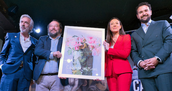 Un vaso que se desborda en forma de rosas, cartel del 64 Cante de las Minas