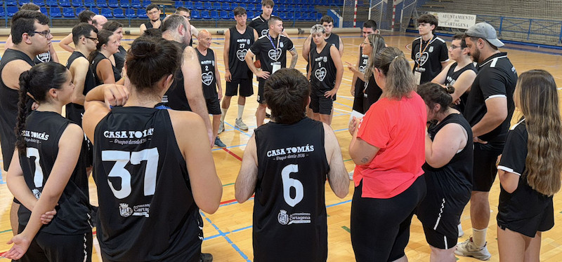 Fomentar la inclusión social, la actividad física y el desarrollo de habilidades motrices a través del deporte, es el objetivo principal del I Campus Inclusivo de Baloncesto organizado por la Fundación Social Cebé Cartagena, que se está celebrando esta semana, del 23 al 27 de junio, en el Pabellón Central de Wssell de Guimbarda.