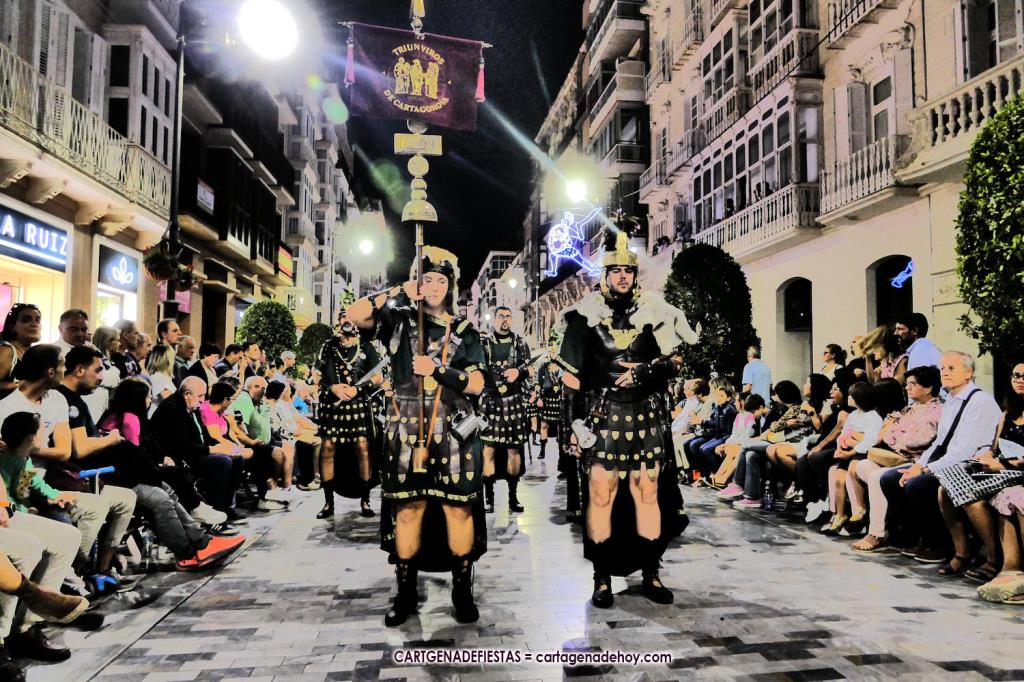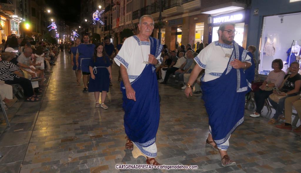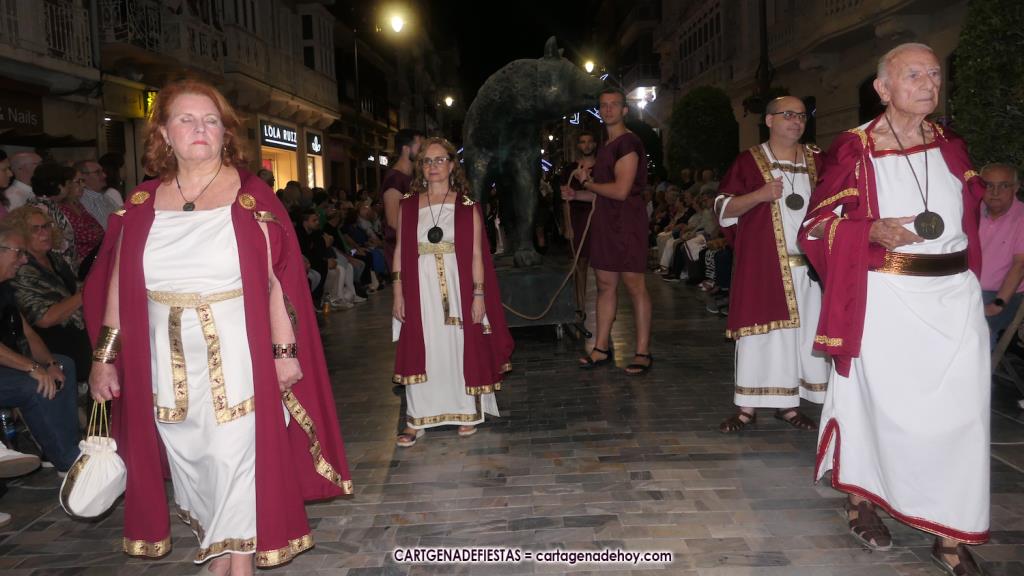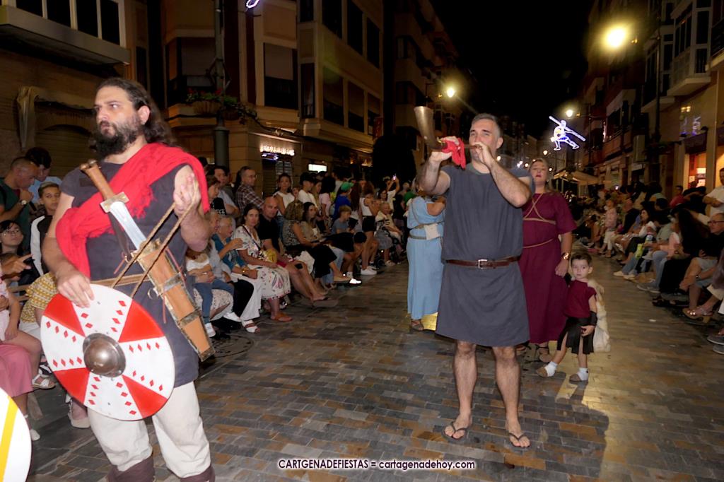 Los grandes protagonistas de la II Guerra Púnica, arropados por militares y civiles de hace más de dos mil años, desfilaron con sus vestuarios de gala por el corazón de la ciudad heredera de Qart-Hadast y de Carthago Nova.