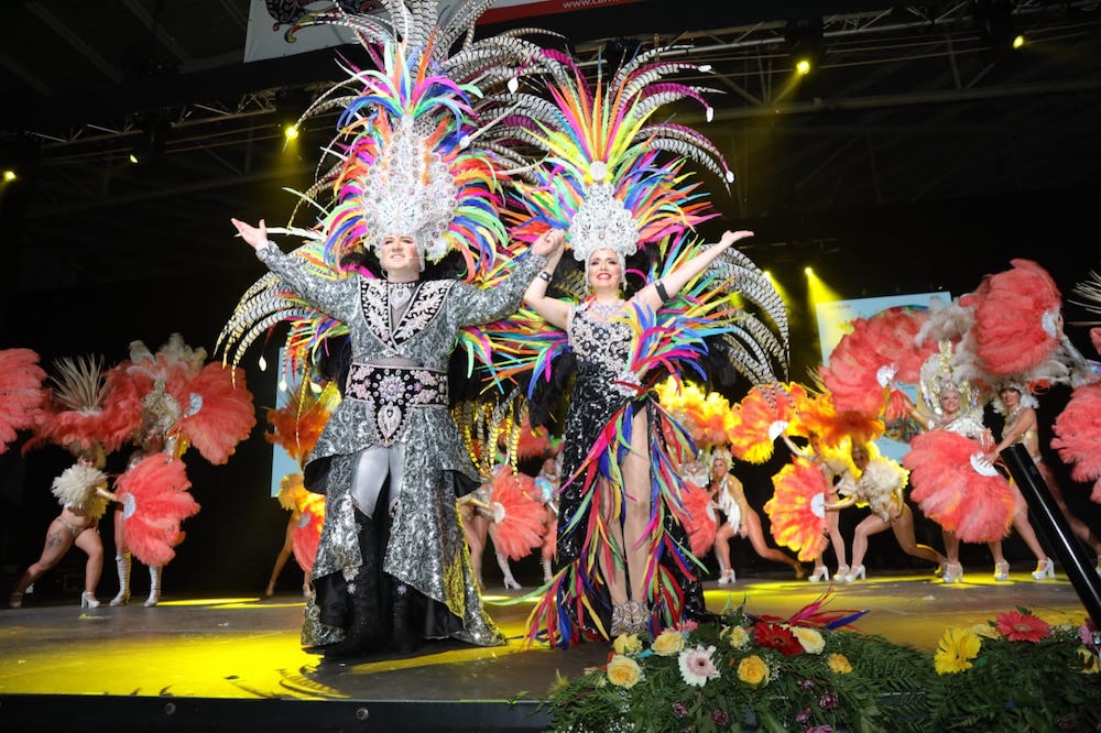 La joven profesora de profesión (pinchar aquí) lucía, junto a una cautivadora sonrisa, una fantasía bautizada como ‘Oshun, riosa de Bayamo’, que movió con música cubana y que portaba centenares de cristales y más de diez mil plumas de pavo real, a las que sumar las de otras aves y otros elementos, siendo su diseñador Miguel Lorente, presidente de la comparsa Aradia.