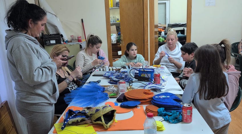 La comparsa mixta del castizo barrio de San Antonio Abad cuenta este año con 38 componentes entre integrantes adultos y menores, que llevan un mes ensayando los desfiles para el uno de marzo en el Carnaval de Cartagena, donde lucirán unos trajes que llevan preparando desde el pasado mes de agosto.