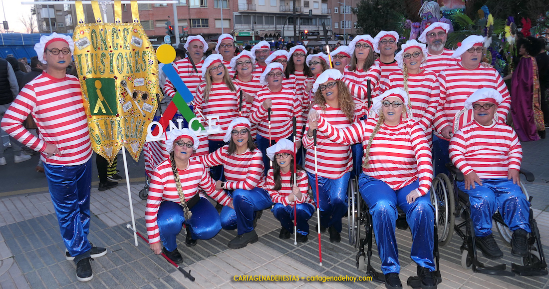La gran fiesta de disfraces y plumas, que arranca sus 12 días de actividades esta noche con el pregón de Eduardo Navarrete (se podrá seguir en directo por internet) y una fiesta ante el Palacio Consistorial, es cada vez más inclusivo, pues repetirá la comparsa 'Ilusiones' de la ONCE (foto adjunta del pasado año) y tiene como novedad que al título de reina se sumará el de rey con gala propia. Otra novedad será el desfile regional de comparsas.