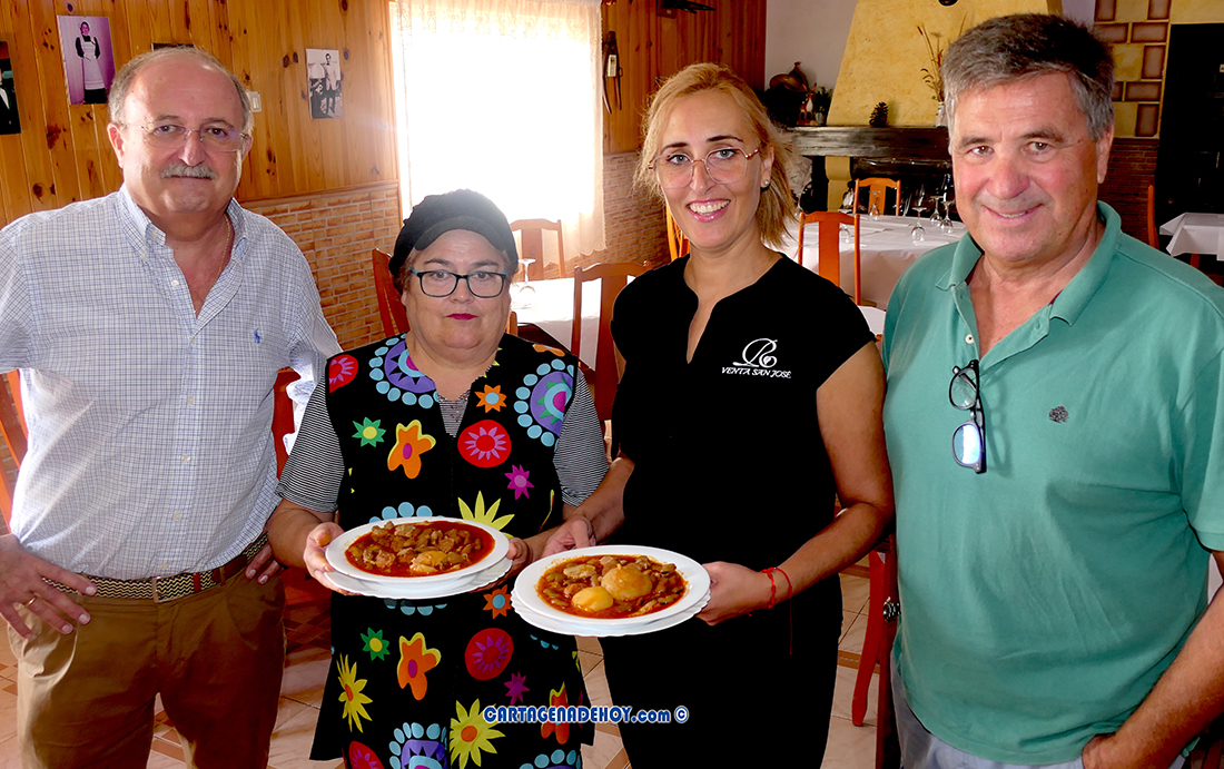 'Venta San José' recibió el premio de la tercera edición del 'Michirón de oro', un concurso que surgió por un 'pique' entre Tomás Martínez Pagán y Ramón Galindo, a quienes se observa en los laterales de la foto con la cocinera (Paqui) y la gerente (Eva Hernández) del establecimiento de El Algar.
