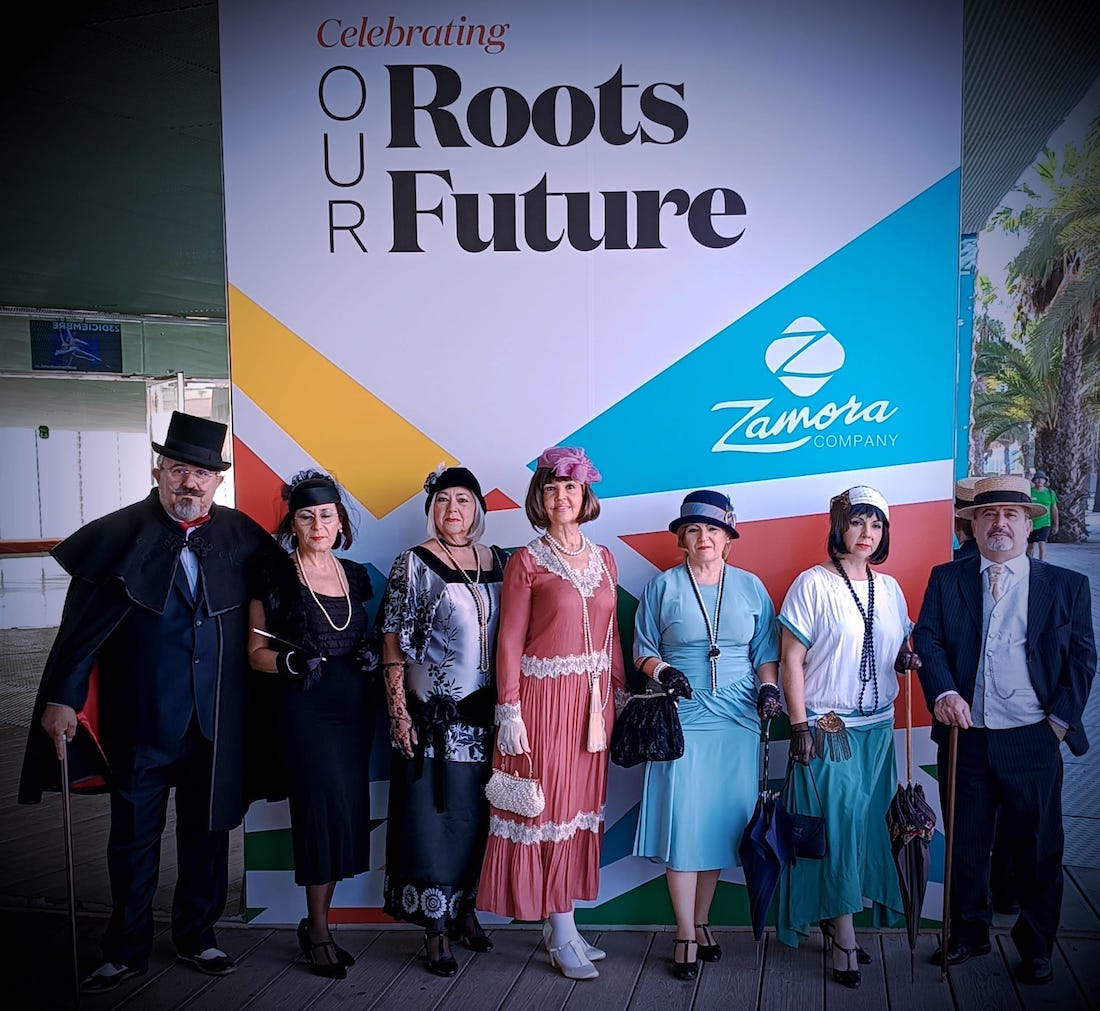 Representantes comerciales de 52 países participaron en un evento internacional de la cartagenera empresa Zamora Company (Licor 43) en El Batel, lugar en el que el grupo de teatro y recreacionista de la AC Modernistas de Cartagena de Levante representó los tiempos de Ramón Bilbao, famoso bodeguero cuya empresa hoy es del Grupo Zamora.