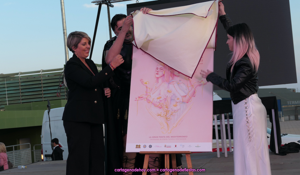 En la explanada del puerto próxima a la terminal de cruceros ‘Juan Sebastián Elcano’, y con presencia de representantes de varios partidos políticos (PP, Sí Cartagena y MC, que hayamos visto), entre los que figuraba la alcaldesa, se ha dado a conocer la obra de Clara Ledo, una joven cartagenera de 32 años de edad que ha roto moldes en la concepción de la imagen que representa a las históricas fiestas, pues desaparece el espíritu bélico, que no el valor.