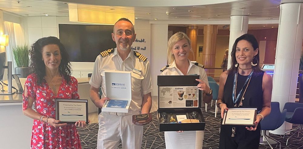 Con motivo de su primera escala, la responsable de Desarrollo de Negocio de la Autoridad Portuaria, Hortensia Sánchez, la responsable de Desarrollo de Negocio de la consignataria Agencia Marítima Blázquez, han dado la bienvenida al crucero y han participado en el tradicional intercambio de metopas con el capitán del buque. También, una comitiva de Cartagineses y Romanos ha dado la bienvenida a los pasajeros.