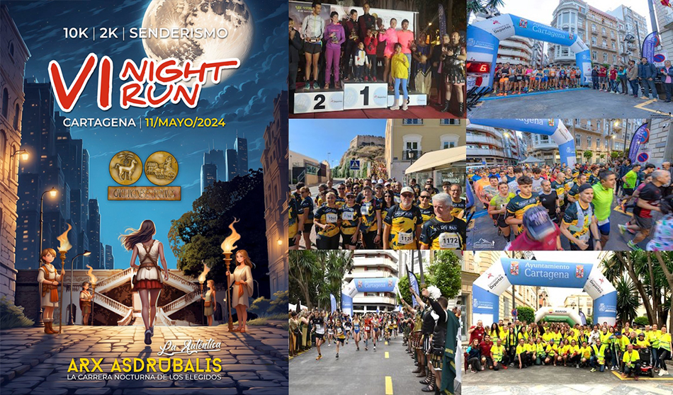 La carrera nocturna que organiza la Federación de Tropas y Legiones de las Fiestas de Carthagineses y Romanos celebrará su sexta edición el 11 de mayo a partir de las 21.03 horas. Antes se celebrarán la carrera de jóvenes guerreros (20 horas) y la marcha senderista (10 horas). El plazo de inscripción sigue abierto.