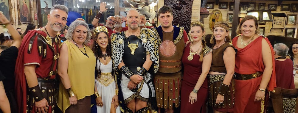 Las fotos corresponden al encuentro celebrado este año en el restaurante ‘El paso de los elefantes’ de San Antón-Urbanización Mediterráneo con los tres festeros que representan a los hijos de ‘El león de Cartago’, junto a la presidenta del Consejo Carthaginés, Lola Pérez, y la presidenta de Torpas de Aníbal, Carmen Pareja, entre otros.