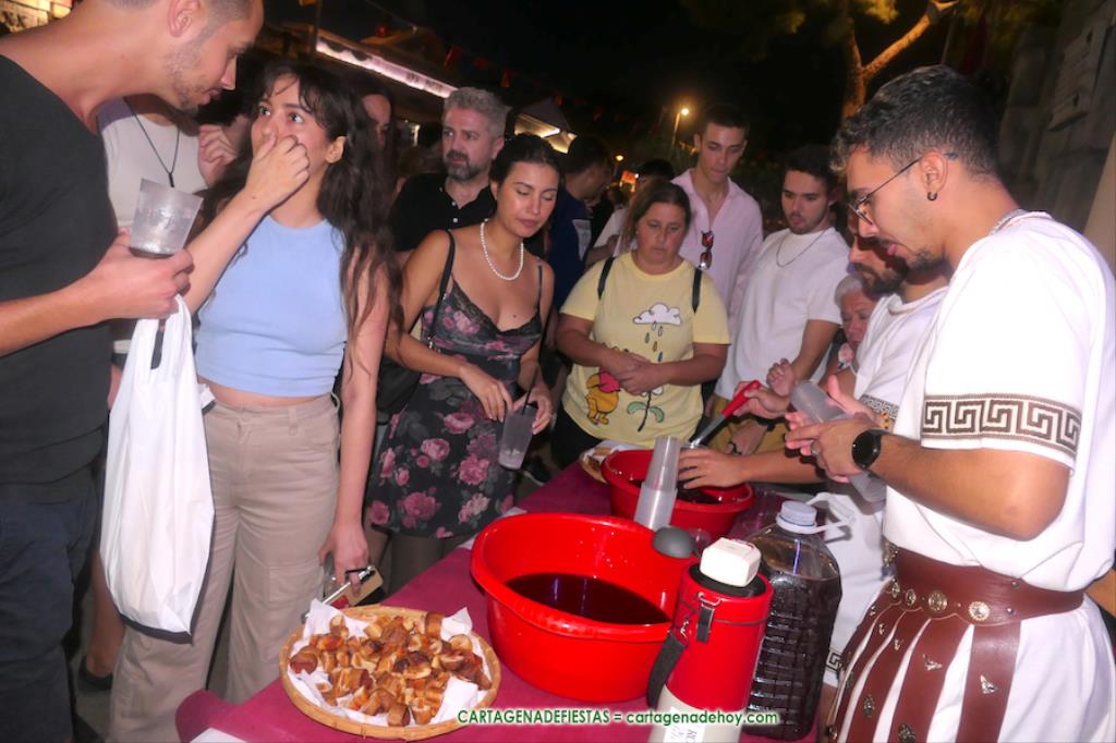Esta vez, la feria de los sabores romanos fue toda de madrugada, pues la entrada de Emilia Paula en la vía romana estuvo más cerca de la una que de la medianoche, lo que restó degustadores de todos los productos que se ofrecían de forma gratuita en las 25 legiones, pero, aún así, fueron cientos los comensales.