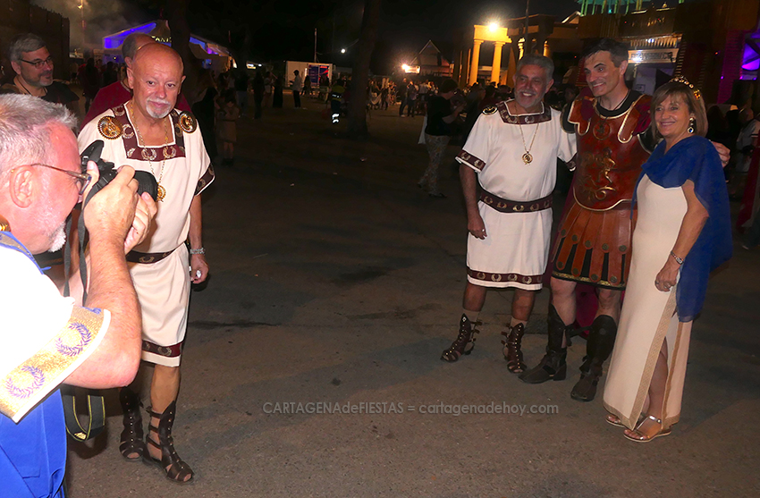 El elegido por el Senado Romano para presentar el ‘Circo Maximus’ ha dejado huella por esta trimilenaria tierra, no sólo por el buen hacer en el cometido por el que lo contrataron, sino por su presencia en el campamento, recordando a aquellos primeros años en los que famosos recorrían los recintos de tropas y legiones. En la foto se observa al polifacético artista aragonés con festeros de Vigiles de Carthagonova.