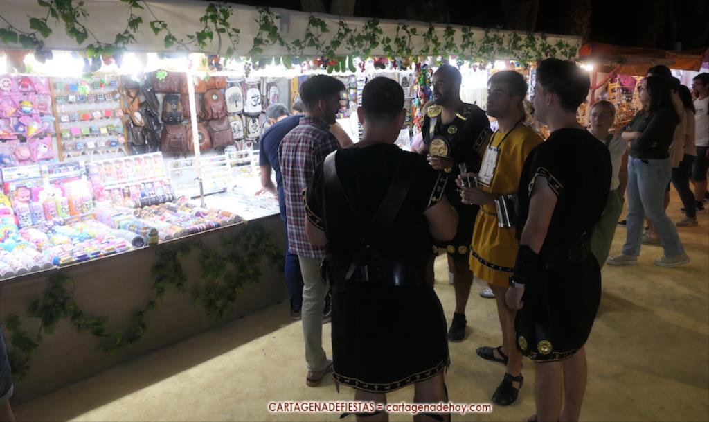 El mercado de la Fiestas de Carthagineses y Romanos del parque de Antonio Vallejo (junto al campamento festero) fue inaugurado ayer tarde con noventa y ocho puestos, figurando entre las novedades los de salchichas alemanas, pirograbados y velas de colza.
