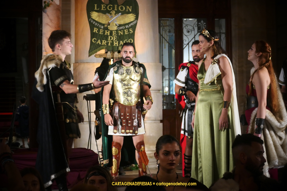 Después, desde el balcón del Palacio Consistorial, el propetor dio lectura al edicto que imponía la Ley de Roma en la ciudad, cuyos habitantes deberían asumir su lengua, usos y costumbres. También se anuncia la reconstrucción de la ciudad y la reordenación de las explotaciones de la sierra minera, además de ordenare a las legiones que desfilen para que todos conozcan su triunfo. ¡Sea Cartagena romana!