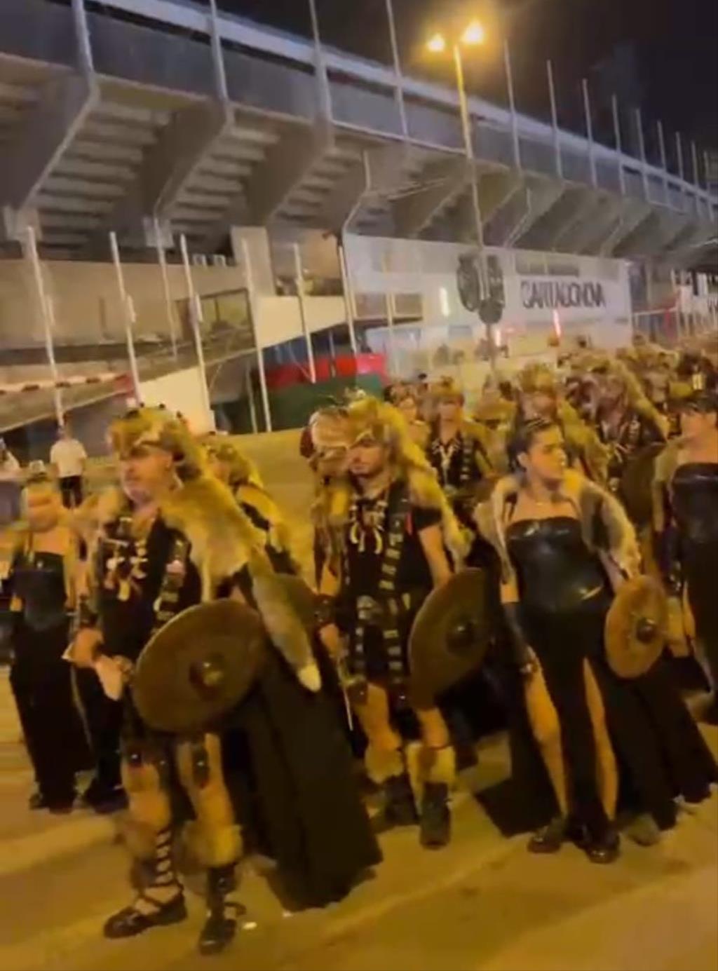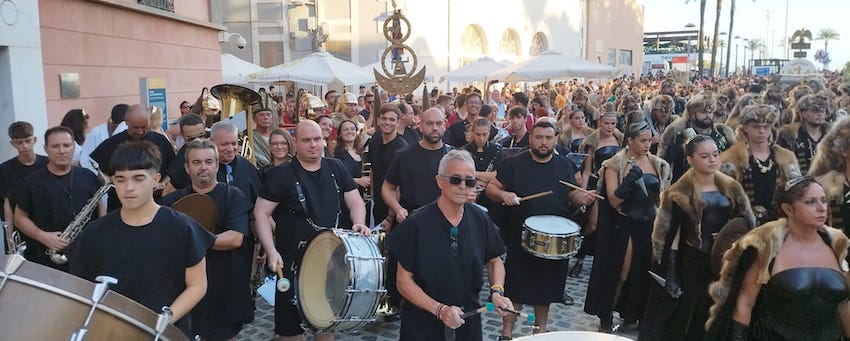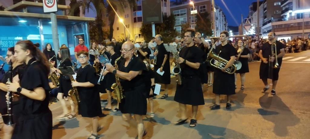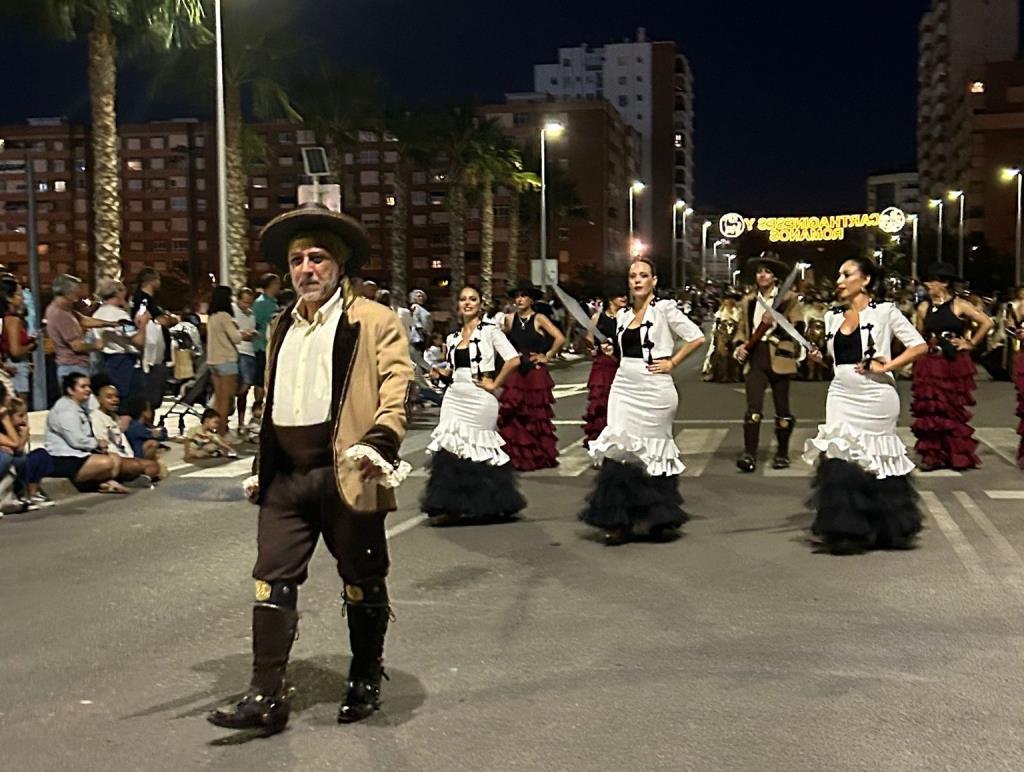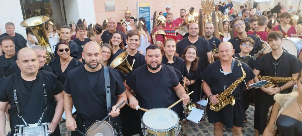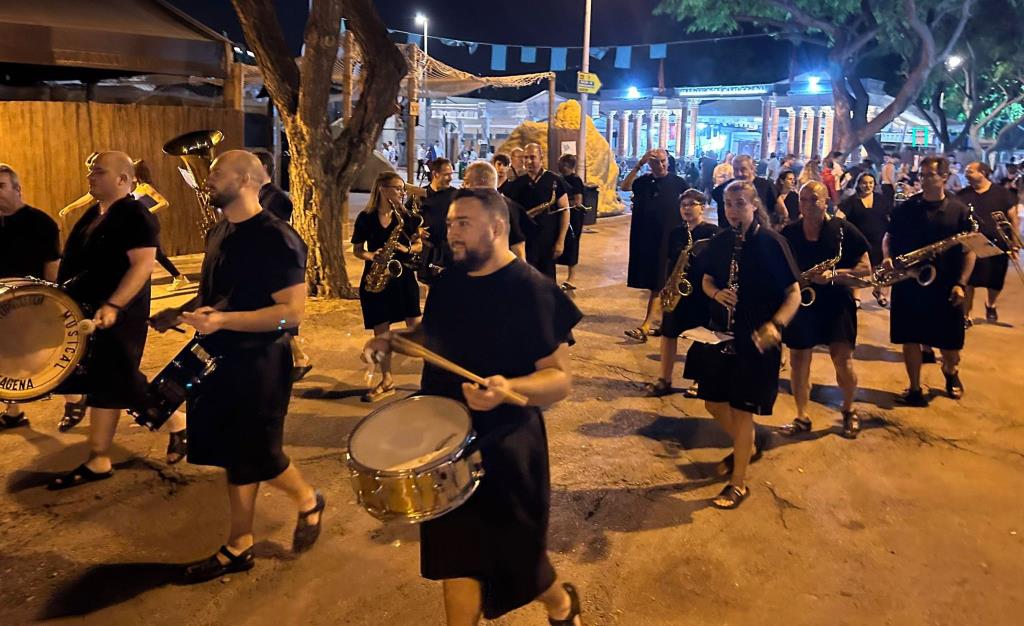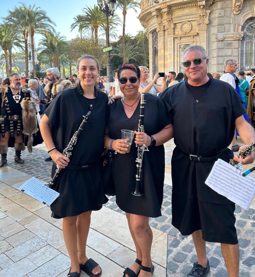 La Agrupación Musical 'Cartagena 1990' llevó a cabo un doble 'viaje en el tiempo' (II Guerra Púnica y Edad Media) el pasado sábado en el desfile general de Carhtagineses y Romanos, pues el grupo se dividió para acompañar a una comparsa de Moros y Cristianos de Santomera y para animar, luciendo túnicas de época, la marcha de Guerreros de Uxama.