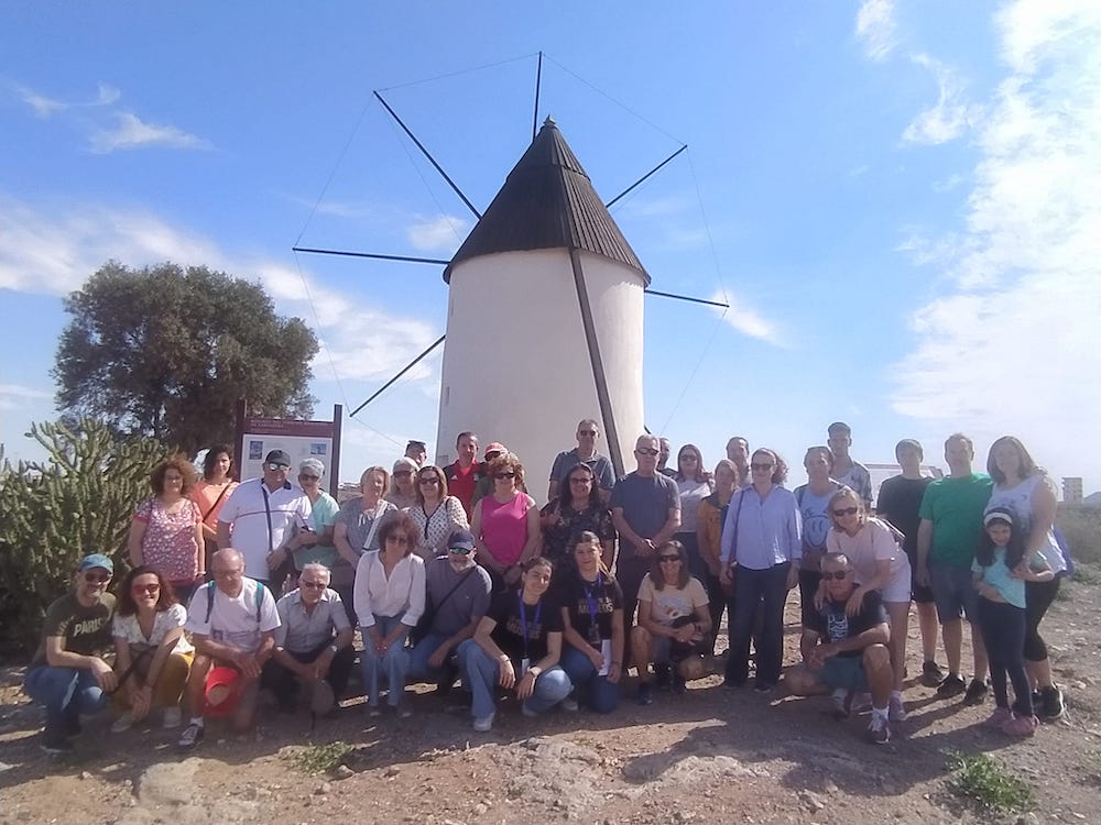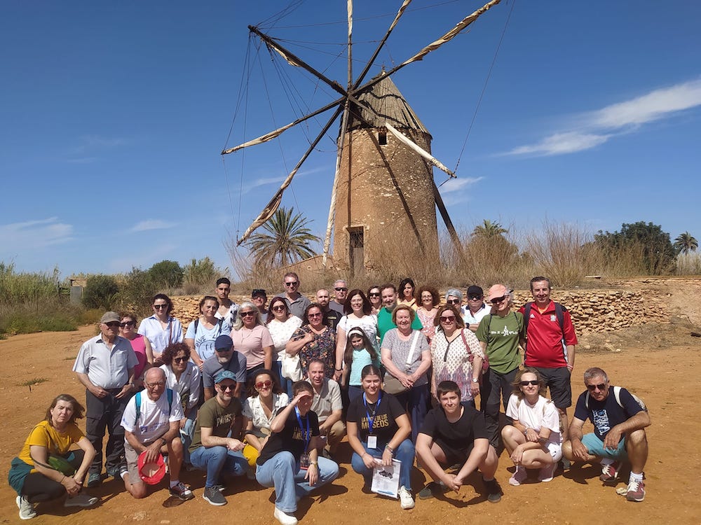 Fotografías de dos grupos guiados por Javier Lorente, artista y defensor de las tradiciones de nuestra tierra, para visitar molinos de viento típicos, una propuesta incluida en la gran cita museística de hoy.