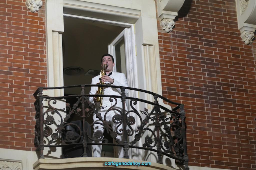 En esa zona estaban los belenistas en la sala ‘Domingo Bastida’ de La Económica, cuyo histórico edificio también se podía visitar. El saxofón sonada desde el Palacio de Aguirre, acompañándonos su sonido hasta que fue reemplazado por el jazz de ‘Jaranay Club’ en la plaza del Rey, para poco después escuchar a ‘Che Swing&Marina’ ante el Palacio Consistorial, mientras que en el interior eran visitados este edificio de 1907 como sus salas de exposiciones.