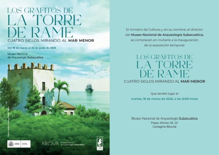 El Museo Nacional de Arqueología Subacuática ARQVA, museo de titularidad estatal perteneciente al Ministerio de Cultura, inaugura la exhibición temporal ‘Los grafitos de la Torre de Rame. Cuatro siglos mirando al Mar Menor’, organizada en colaboración con la Asociación Los Alcázares Eco Cultural (LAEC).