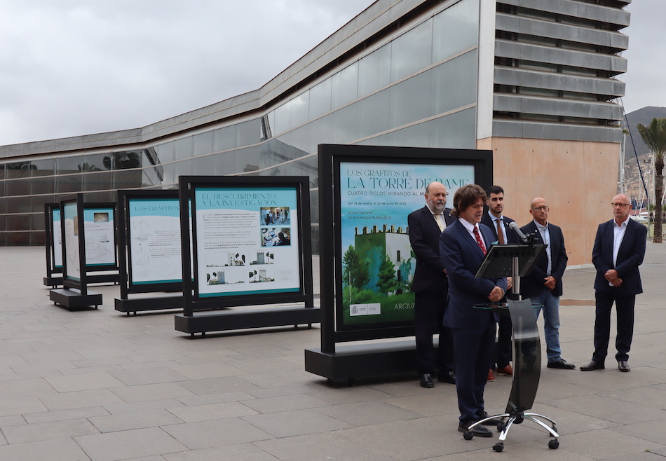 Es el título de la exposición que se ha inaugurado en el Museo Nacional de Arqueología Subacuática, donde se exhibe una selección de imágenes de entre los trescientos grafitos históricos, de diversa temática, localizados en la atalaya. Podrá visitarse hasta el 22 de junio en el exterior del ARQVA.