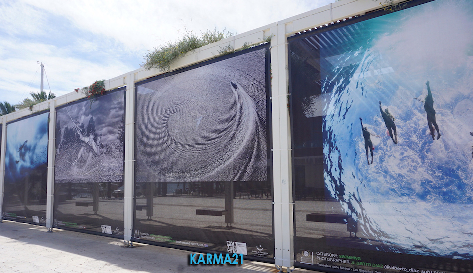 La plaza del paseo del puerto donde se encuentra el mapa mundi que tiene marcadas las Cartagena del mundo está rodeada estos días por las impresionantes fotografías que han participado en el certamen internacional ‘Ocean Power’ que se celebró en Cartagena hace unas fechas.