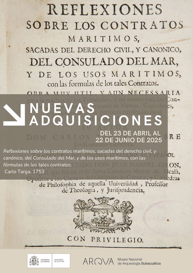 A partir del 23 de abril y hasta el 22 de junio, el museo exhibirá la obra, adquirida recientemente en subasta pública, ‘Reflexiones sobre los contratos marítimos, sacadas del derecho civil, y canónico, del Consulado del Mar, y de los usos marítimos con las fórmulas de los tales contratos’, de Carlo Targa y publicada en Madrid en la imprenta de Francisco Xavier García, en 1753. El libro del jurista genovés Carlo Targa presenta una revisión del derecho marítimo vigente a finales del siglo XVII en la región mediterránea. La República de Génova ejerció una gran influencia en el orden político y financiero europeo como elemento crucial del sistema imperial español. Su puerto fue un importante centro de distribución que favorecía el tránsito de mercancías procedentes de diversos territorios. La historia de este tráfico se refleja en la influencia de este pequeño estado a la hora de desarrollar instrumentos jurídicos con los que regular el comercio marítimo y reducir los riesgos empresariales. El trabajo de Targa adquirió gran popularidad, con sucesivas reediciones hasta inicios del siglo XIX.