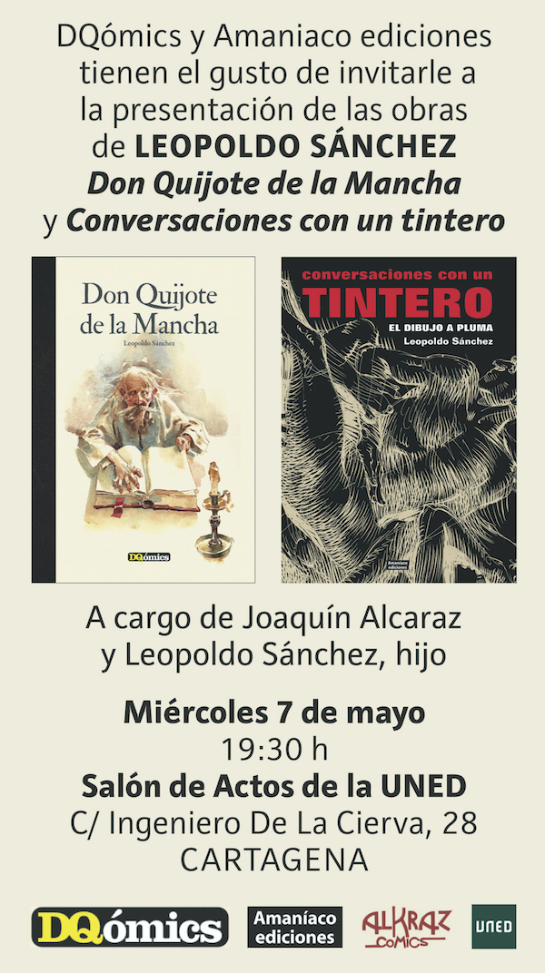 El salón de actos de la Universidad Nacional de Educación a Distancia en Cartagena acoge este miércoles por la tarde la presentación e dos libros del artista cartagenero, considerado uno de los mejores ilustradores de nuestro tiempo, habiendo sido además un excelente y reconocido pintor. Entrada gratuita.