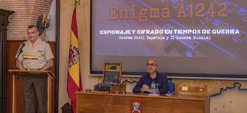 La conferencia, presentada por el teniente coronel Ernesto Terry, director del museo, fue impartida por Ángel Tarifa, auténtico experto en la materia. El ponente explicó que «Cartagena alberga desde hace unos años una pieza única en la historia de la criptografía militar: la máquina ‘Enigma A1242’, la más relevante de las que existen en España». Este ejemplar fue fabricado en Berlín en 1936 y tuvo un recorrido lleno de peripecias hasta su llegada a nuestra ciudad.