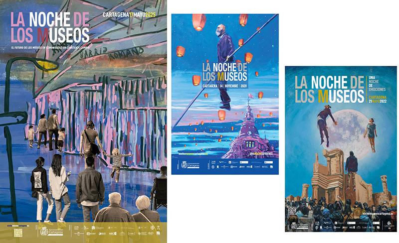 La imagen, obra del cartagenero Juan Miguel Sánchez Nieto 'Juanmi', has sido elegida entre las once propuestas presentada para ilustrar el evento que se celebra el 17 de mayo. El mensaje que se quiere transmitir es: 'Todo el mundo a los museos, ¡es una Noche mágica para disfrutarlos!...'. La imagen del cartel figura junto a estas líneas acompañadas por otros carteles del mismo autor de los años 2020 y 2022.