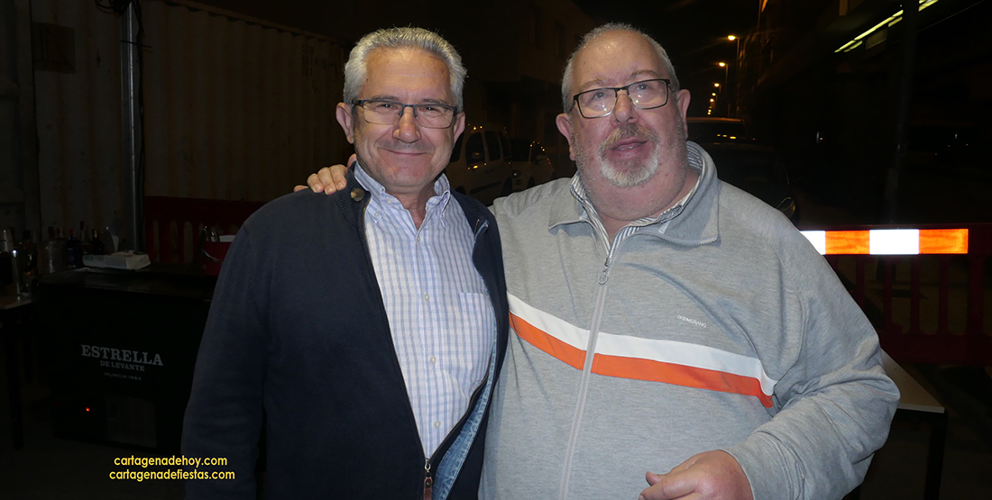 El presidente de la comisión de fiestas, Celestino Conesa, a la derecha de lector, posa con Rosendo Alcaraz, presidente del Casino, Sociedad Recreativa La Oriental, que tiene una antigüedad de más de ciento cincuenta años.