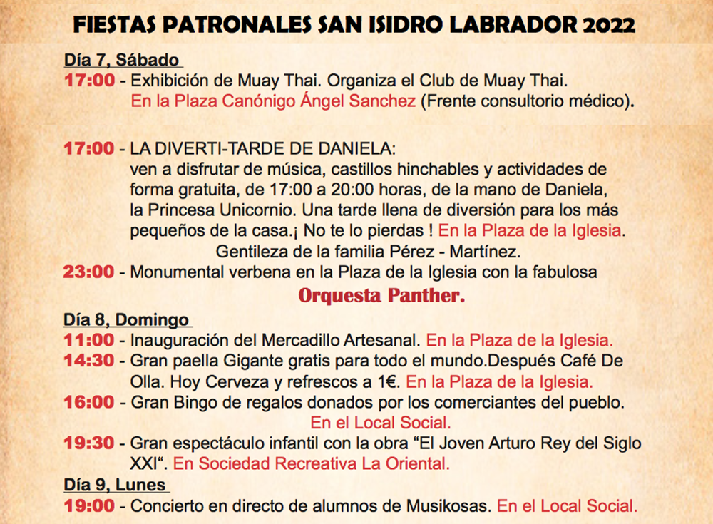 La banda que tiene como voz a Paco Vera animó una muy agradable verbena en la plaza de la Iglesia, donde se distribuyeron más de quinientas morcillas entre los asistentes. El programa de las fiestas patronales ofrece hoy a Orquesta Panther y un arroz gigante el domingo.