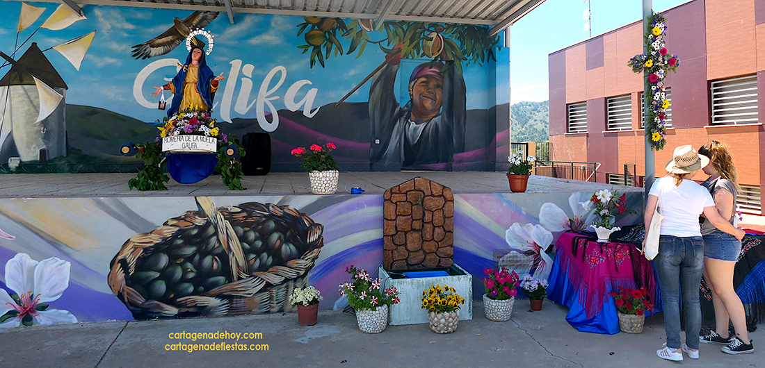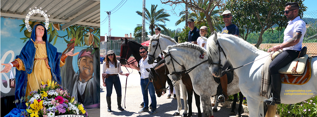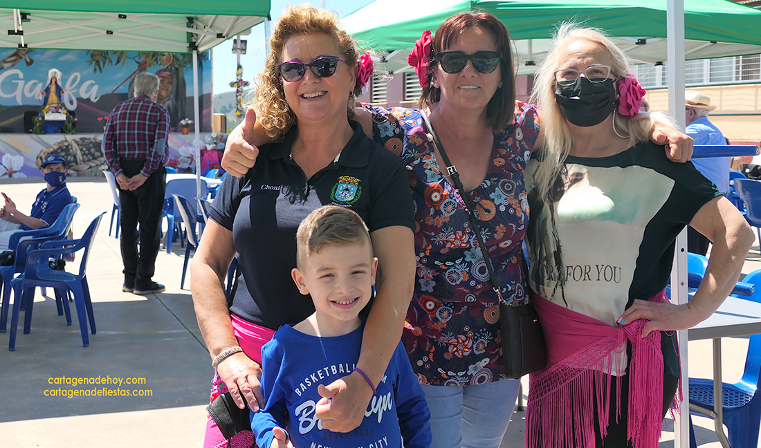 Animado domingo en el pueblo del oeste cartagenero, con romería de la Virgen Dolorosa de la Muela desde su iglesia hasta el polideportivo, donde estaba la cruz de mayo y donde se llevó a cabo una jornada de convivencia, enriquecida por la tarde con el concierto de Adrián Ruiz y loterías familiares.