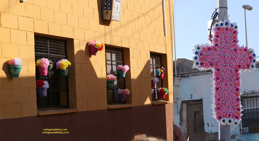 La asociación de vecinos recuperó esta celebración con algo más de veinticuatro amenas horas que incluyó las actuaciones musicales de Cristopher Martínez y de ‘Aires de la calle’, además de pasacalles de la banda local de cornetas y tambores ‘la buena unión’ y actividades infantiles con pintacaras, hinchables y chocolatada. La edil Irene Ruiz estuvo en la noche inaugural, en la que fue bendecida la floreada cruz por el párroco del barrio, Ángel Obradors.