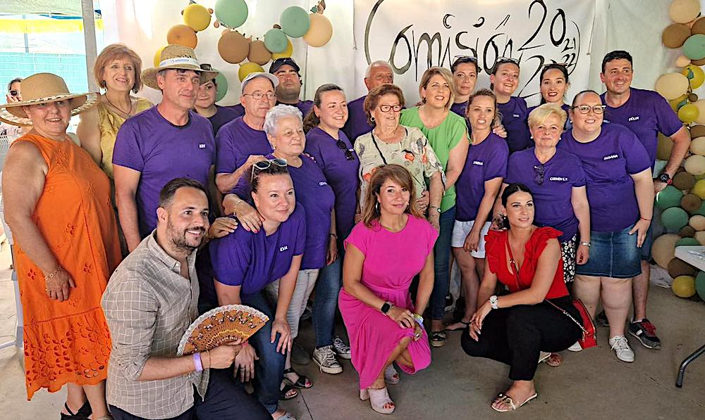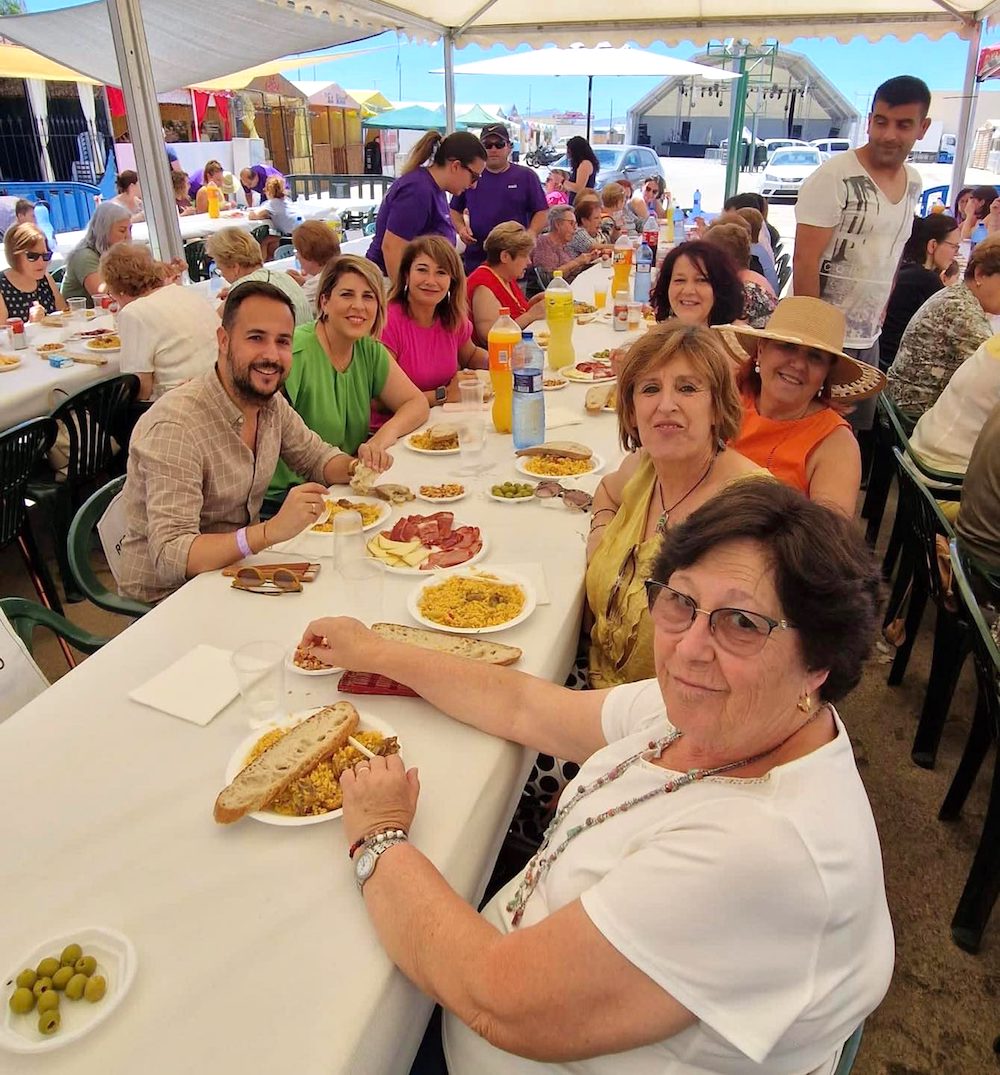 Los festejos de La Aljorra han tenido también el 'Día de la mujer', en el que al arroz fue protagonista del encuentro en torno a la mesa y mantel, en una jornada que contó con las visitas de la alcaldesa de Cartagena, Noelia Arroyo, y los ediles Cristina Mora y David Martínez, quienes posan en la foto con la comisión organizadora de estas populares jornadas en el pueblo.