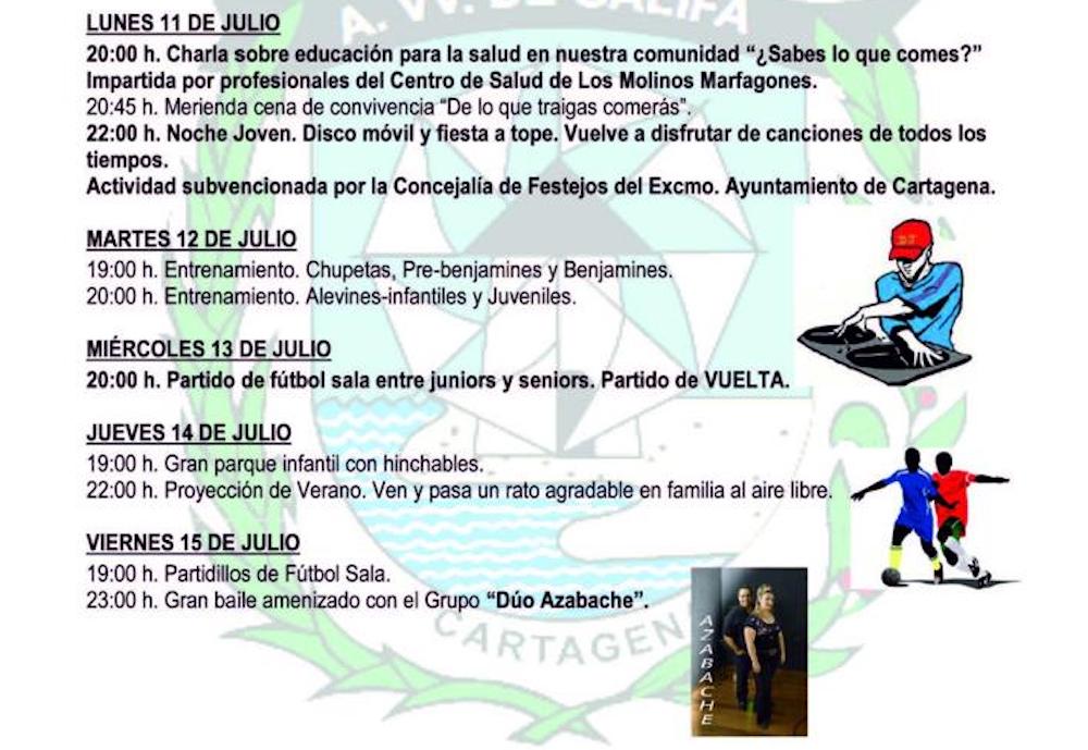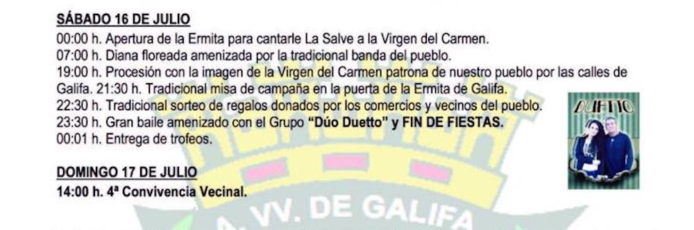 Los festejos, que se iniciaron el 25 de junio, afrontan su recta fina con charlas, deportes, actividades infantils, cien de verano, bailes, convivencia vecinal y, entre otras actividades, la celebración de la Virgen del Carmen, con procesión de la imagen por el pueblo y misa en la puerta de la ermita.