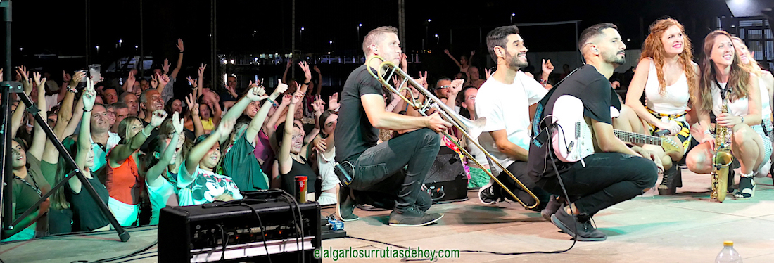 La actuación del grupo cartagenero en el escenario del polideportivo animó la noche de Santiago Apóstol en una convivencia de vecinos y visitantes junto al Mar Menor, que pone el broche a las 'Fiestas del Carmen a Santiago' que ha organizado la asociación de vecinos de Los Urrutias.