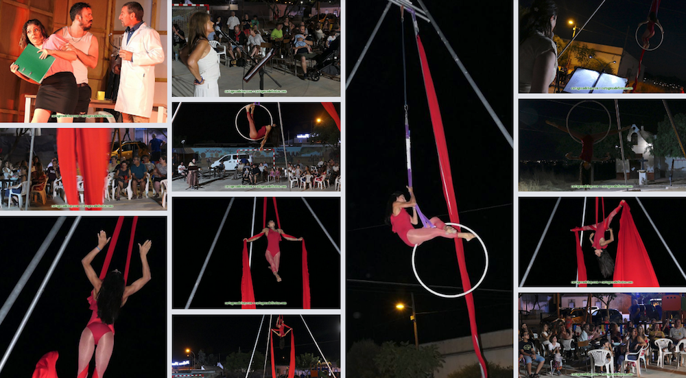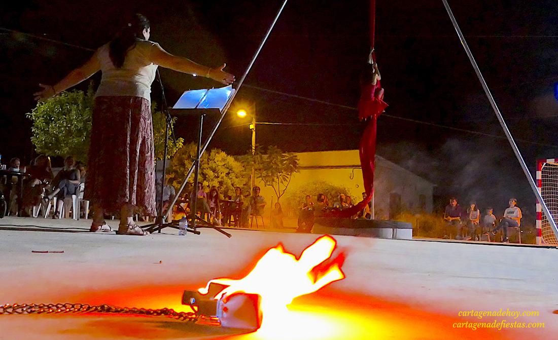 El espectáculo de acrobacia aérea y con fuego de Nati Guerrero Santos en el corazón del secano cartagenero superó su alto nivel con la voz de Pili Martínez Soriano interpretando diversas canciones que potenciaban las escenas. Era la primera vez que ambas confluían en el mismo espectáculo y resultó un gran éxito.  Fue un final de fiestas populares, donde el humor del teatro de La Murga puso el boche.