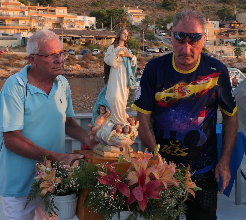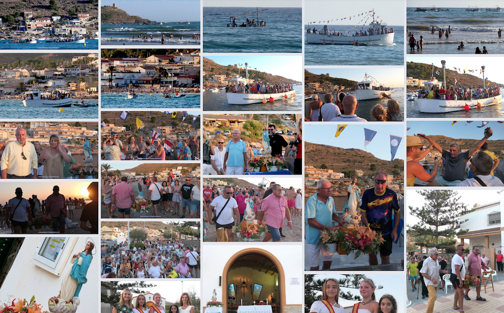 El 5 de agosto comenzaban las fiestas en La Azohía, un cautivador pueblo marinero de la costa cartagenera. Ayer, día 15, llegaban a su final con una activa jornada que incluyó un concurso de arroces y el concierto final de ‘Los vecinos del cuarto’, pero el momento más esperado tuvo lugar por la tarde, sobre las siete, cuando la Virgen volvía a navegar, lo que no tenía lugar desde 2019, pues después llegó el paréntesis pandémico y ya no salió de su templo. El mar no era el ideal. Con viento de lebeche, el agua estaba muy picada, lo que hizo que algunas embarcaciones optasen por no salir y que, incluso, en algún momento se plantease no celebrar la comitiva marina. Pero salió arropada por más de una quincena de embarcaciones y unos ciento cincuenta tripulantes repartidos entre los que formaban su escolta. Entre los que navegaron junto a la Virgen, además de integrantes de la corte de honor de las fiestas, estuvieron la alcaldesa, Noelia Arroyo, y el concejal Diego Ortega.