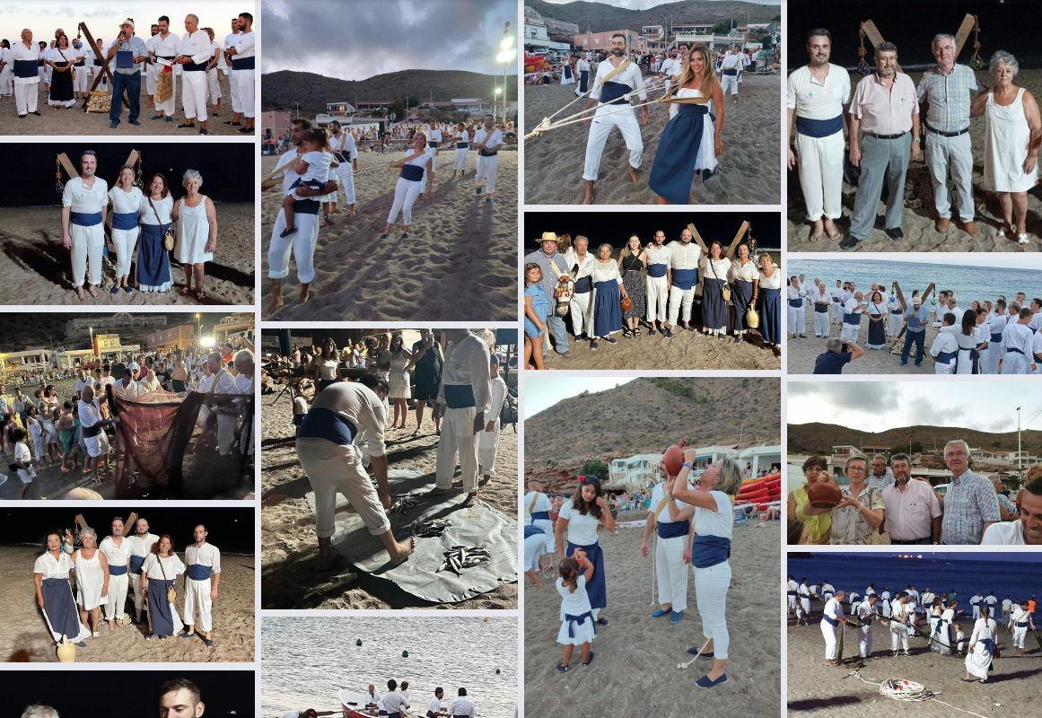 El Portús es el lugar de la costa ibérica donde cada año (salvo cuando pandemias u otras causas de fuerza mayor lo impidan) tiene lugar la recreación de este sistema con el objetivo de que no se pierda su recuerdo en las futuras generaciones. El pasado sábado volvió a celebrarse al igual que se hacía hasta 2019, cuando se interrumpió, es decir, con la fórmula de salir con la gran red desde la playa para cercar a los peces y después arrastrarlos hasta el arenal. Eso sí, ataviados con el tradicional vestuario de estos pescadores, que es blanco con fajín de color azul oscuro. Indicar que en esta ocasión, entre otros, participaron los ediles Cristina Pérez (PP) y Enrique Pérez (MC), además de Manuel Torres (secretario general del PSOE), entre otros, acudiendo también el presidente de la Asociación de Vecinos de El Portús, Luis Saura; Isabel Andreu, presidenta de la Junta Vecinal de Perín; y del presidente de la Asociación de Vecinos de Galifa, José Andreu, además de las cámaras de la televisión autonómica 7RM para el programa de este próximo viernes noche de ‘En el corazón de la fiesta’.