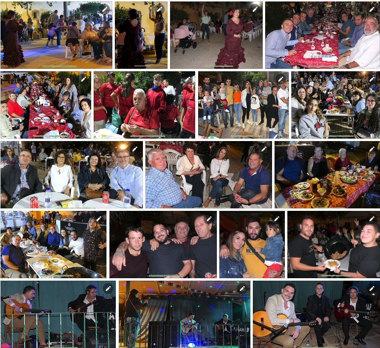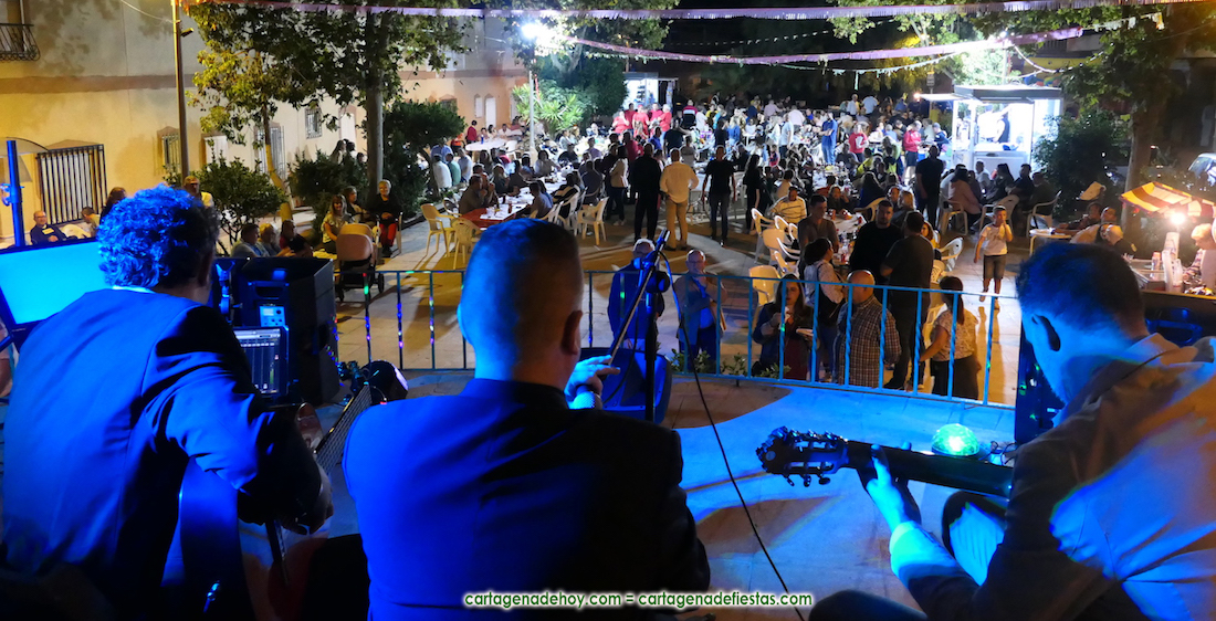 Enfrente, numerosos grupos comenzaron a preparar las populares migas, de las que doce platos fueron presentados ante el jurado. Mientras se preparaban, Ana Martínez ofreció un primer capítulo musical dedicado a la canción española, mientras que después le tocó el turno al flamenco con la voz de Paquito Sánchez y la guitarra de Faustino Fernández, quienes contaron como invitado con la maestría con las cuerdas de Carlos Piñana, guitarrista y concejal de Cultura. También reseñar entre los asistentes la presencia de la presidenta de la Junta Vecinal Municipal de Los Dolores y pregonera de esta edición de las fiestas, Julia Otón, y de una mesa de Movimiento Ciudadano, que contó como comensales con los ediles José López e Isabel García, además de vocales de la junta vecinal, entre otros.